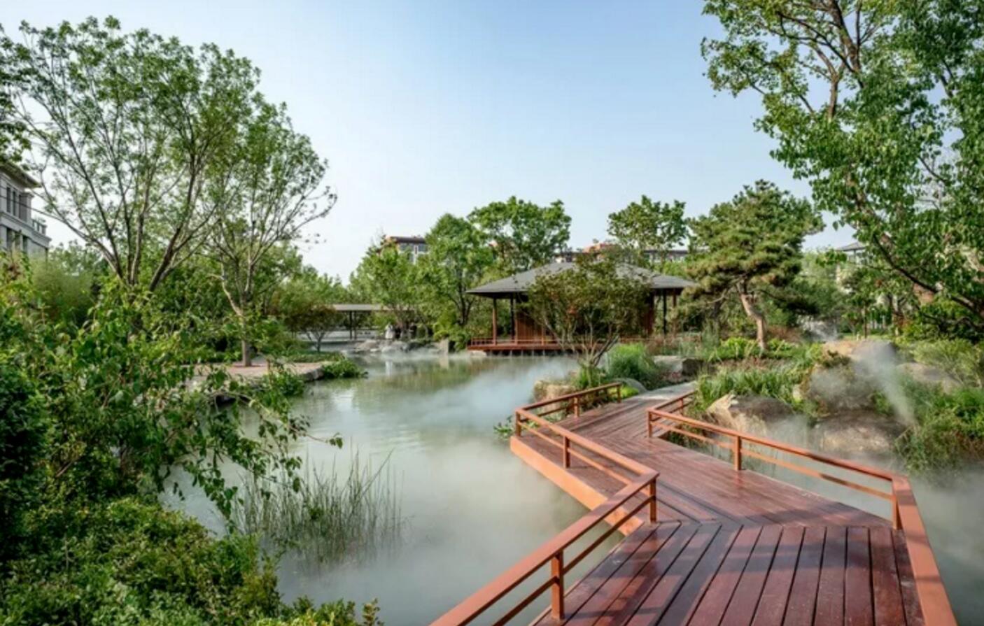 近3萬平的鹿鳴公園作為大墅區的花園客廳,營造出一座具有東方韻味的“城市山林”。園內望岳、長風、松濤、幽篁、秋水、芝蘭、芳茗、青云、安瀾、琴瑟、嘉樹、桃李東方十二境自在成趣,創造入口有巨石、清泉有飛鴻、堂前有絲竹、屋后有雅苑的東方意境。閑來無事,到這里飲酒品茗,也是人生一大樂事。