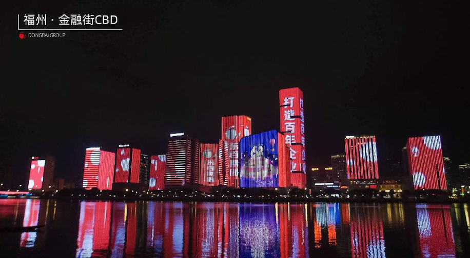 而集團的另一大核心——東百商業則在其“大本營”福州會場,選擇點亮了海峽金融商務區,上演一場氣勢恢弘的主題燈光秀,表達了一家深耕城市62載的企業心聲:感恩時代,我愛福州。此外,商業標桿項目蘭州中心也在黃河畔,點亮了城市制高點為集團慶生。