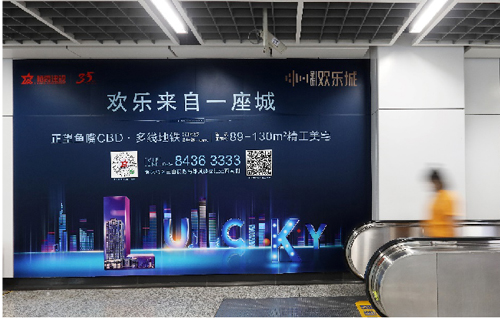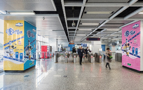 | 創意媒體-南京地鐵仙林中心站社區站廣告 線路:2號線 組合形式 :墻貼2面+柱貼19面 媒體費(元/4周):200,000 制作方式:寫真噴繪 制作費(元/次):35,631 |
