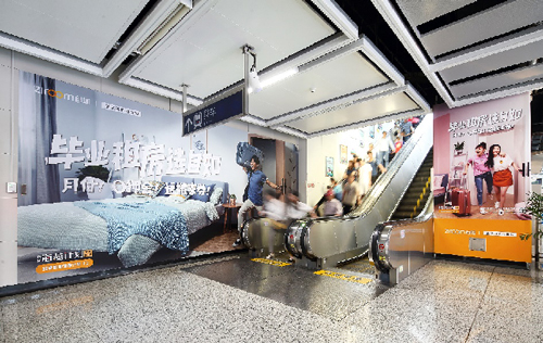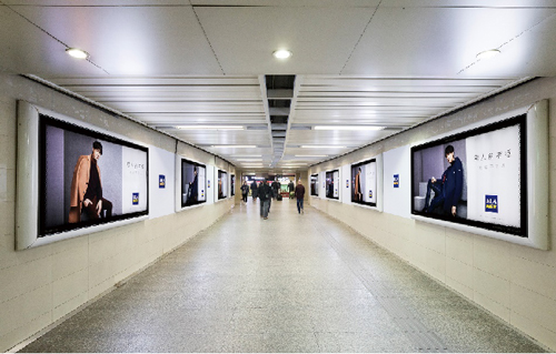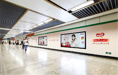 | 創意媒體-南京地鐵新街口站8號品牌通道廣告 線路:1、2號線 組合形式:73.34㎡ 墻貼 媒體費(元/52周):600,000 制作方式:UV寫真燈布 制作費(元/次):22,002 |