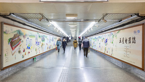 | 創意媒體-南京地鐵雞鳴寺站品牌長廊廣告 線路:3號線 組合形式:9塊12封燈箱+109㎡墻貼 媒體費(元/52周):500,000 制作方式:UV寫真燈片+寫真噴繪 制作費(元/次):41,700 |