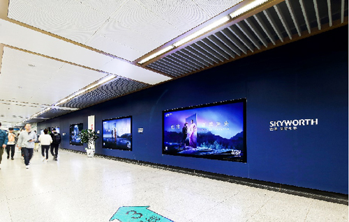 | 電子媒體-南京地鐵玄武門站動感長廊廣告 組合形式:6組(12塊)雙聯65寸高清液晶顯示屏 +82.6㎡墻貼+12封燈箱20套裝 媒體費(元/52周):550,000 制作方式:UV寫真燈片+寫真噴繪+電子動畫 制作費(元/次):44,780(墻貼+燈片) |