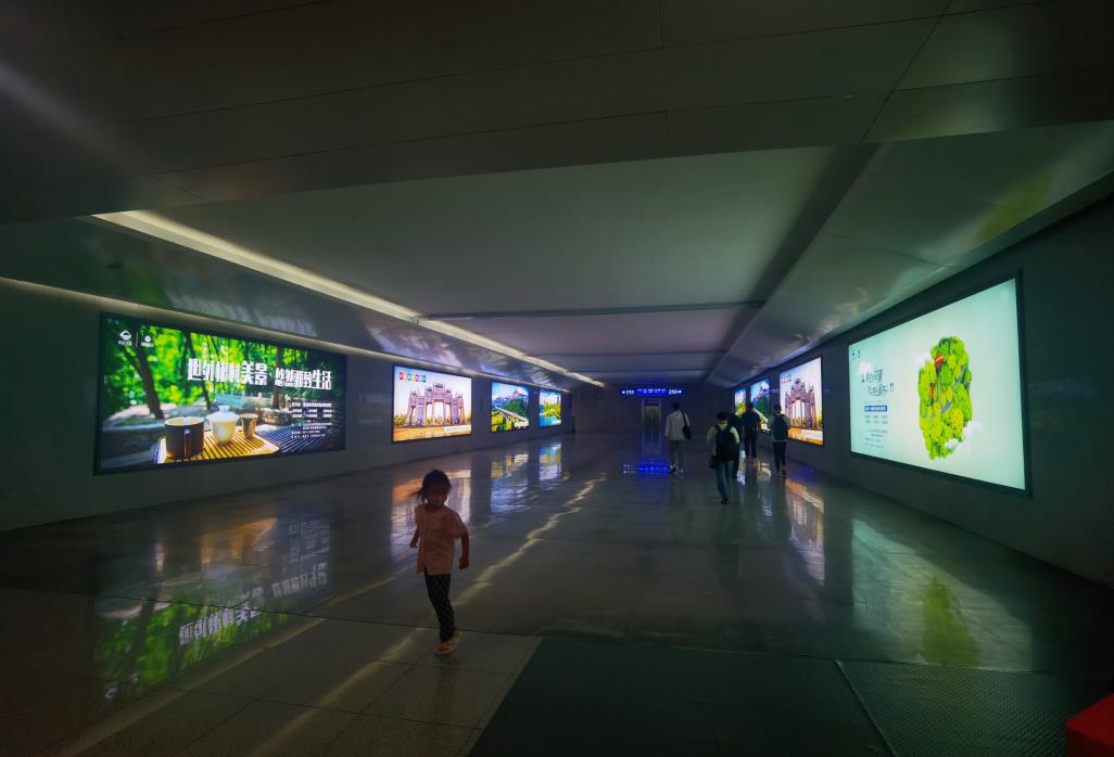 優勢:覆蓋兩個站臺的所有到達旅客,位于扶梯上?,視線正對,百分之百的到達率。