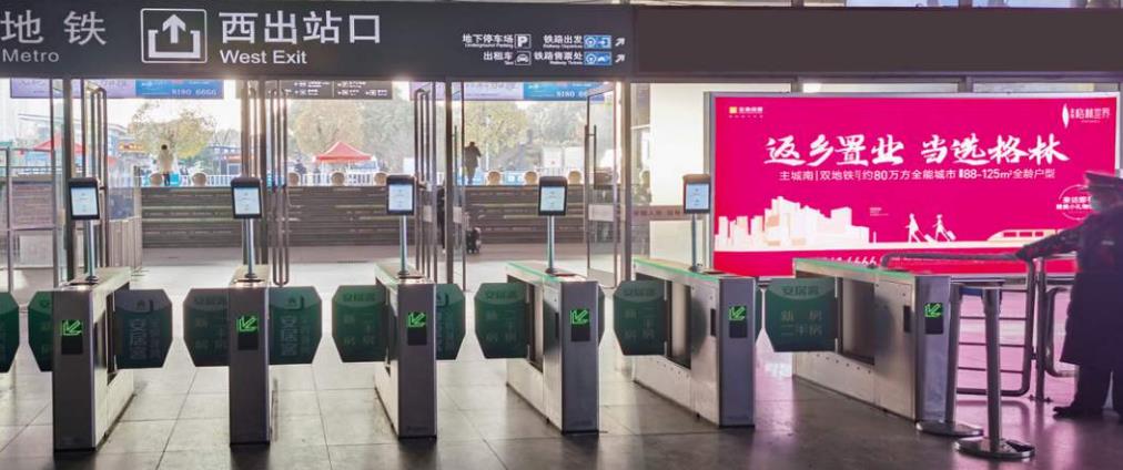 高鐵西出站口通道唯一正面廣告。正對出站客流人