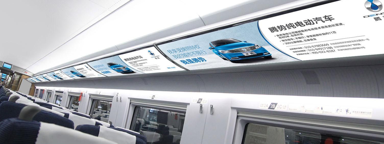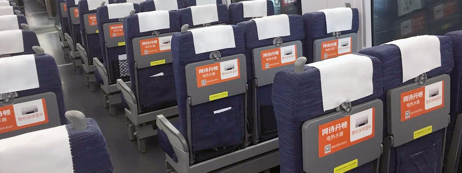 位于所有高鐵車廂內(nèi)行李架下方,對(duì)稱發(fā)布,氣勢(shì)磅礴,視覺沖擊力強(qiáng),無(wú)論坐、立、行,都能有絕佳的視覺效果,利于品牌整體性展示。