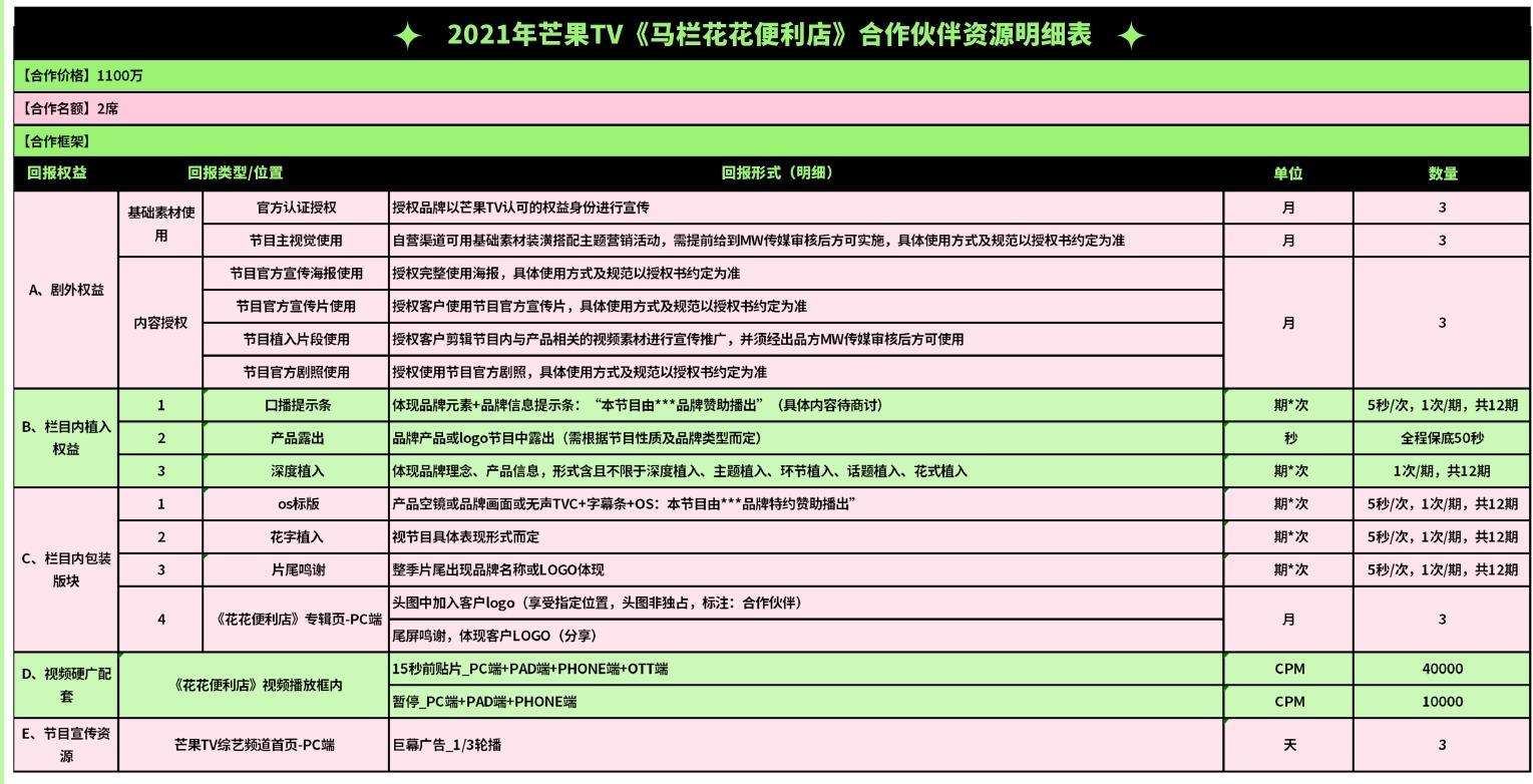 2021年芒果TV《馬欄花花便利店》合作伙伴資源明細(xì)表