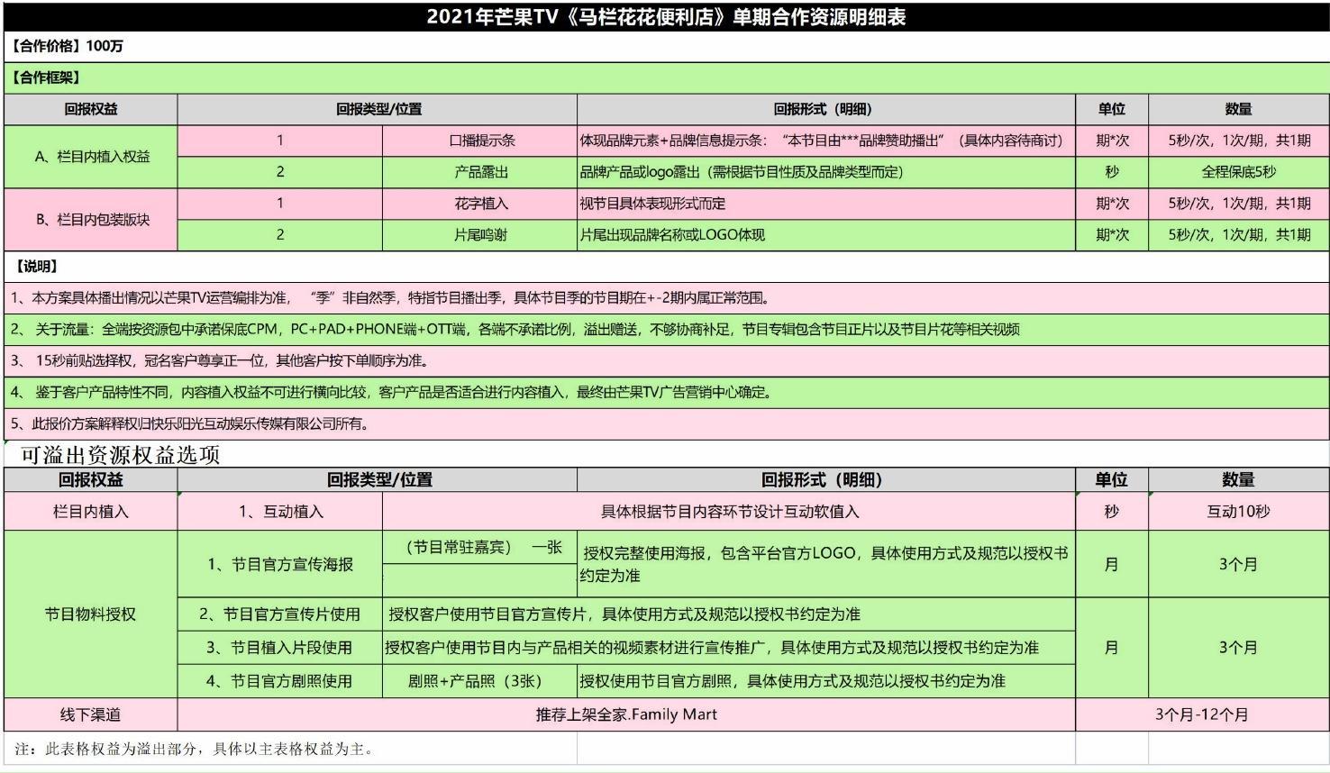 2021年芒果TV《馬欄花花便利店》單期合作資源明細(xì)表