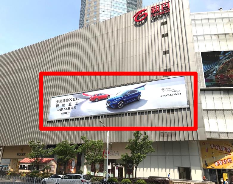 | 南京新百B座北立面墻體大牌廣告 位置:新百B座北立面墻體 形式: 戶外大牌(有照明) 數量: 1 規格:20m(W)X8.5m(H)=170㎡ 人車流量:80萬人次/日 50萬輛次/日 |