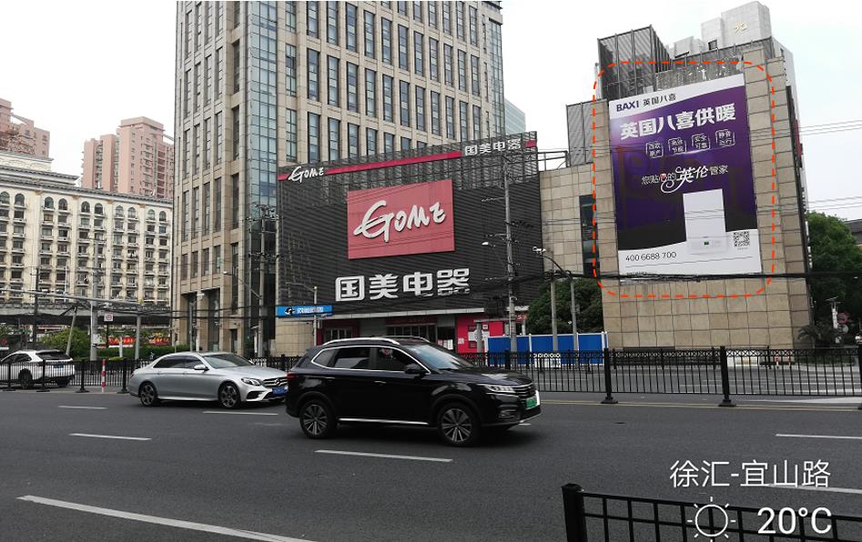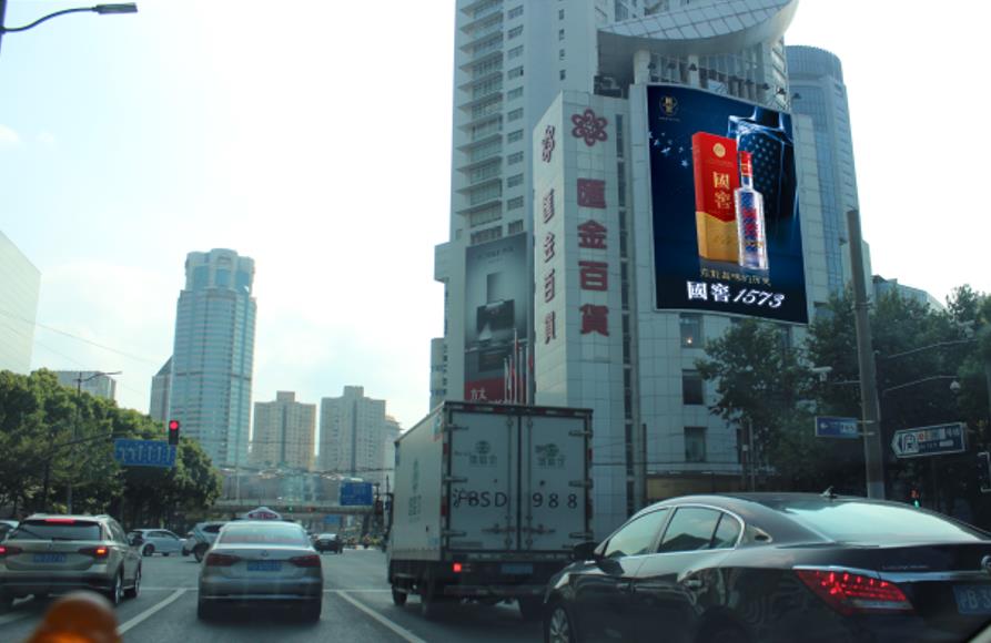 廣告牌位于肇嘉浜路/天鑰橋路交匯處,匯金百貨墻面。