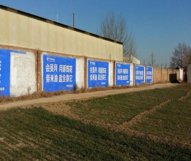 3、更貼近銷售終端。墻體廣告是拓展農村市場的最有力的武器,墻體廣告到達的地方,就有該產品在該區域熱銷的場面,可以是田間地頭,可以是農家小院,也可以是規范的門市,墻體廣告是最貼近消費終端的廣告形式。