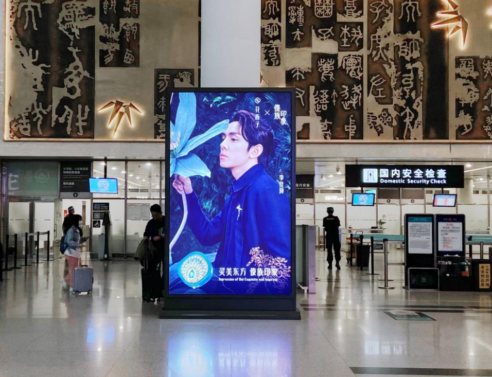 蕭山機場T1國內出發大廳、正對安檢led廣告