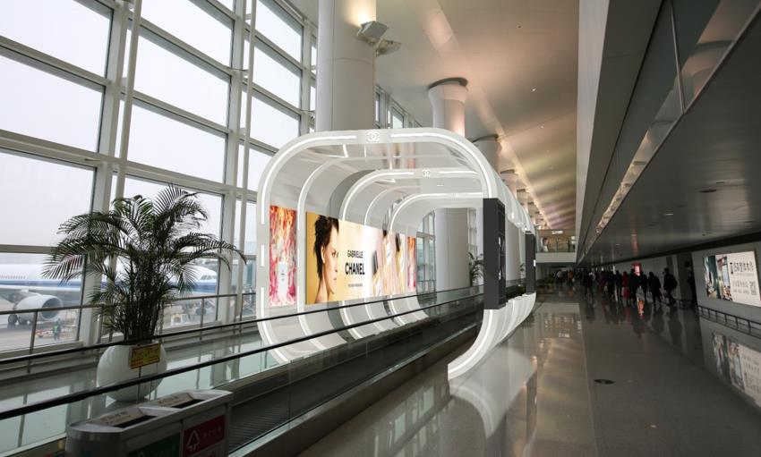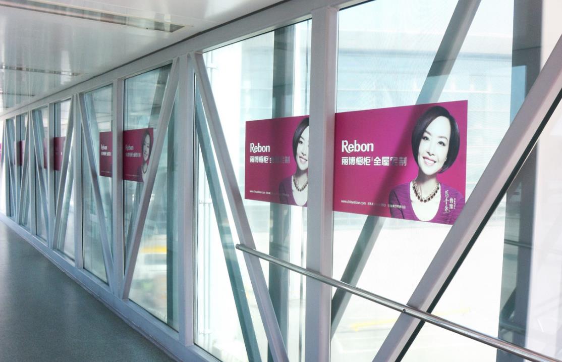 杭州機場航站樓貼膜廣告-T2航站樓廊橋內貼膜廣告