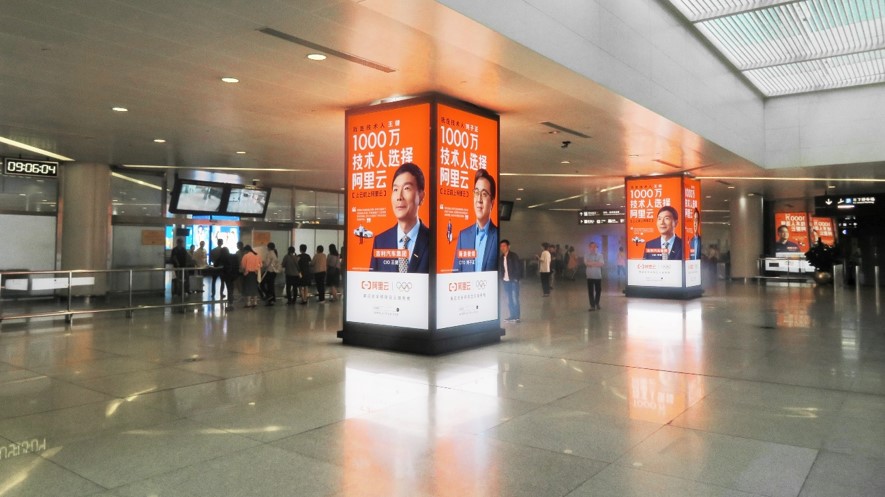 杭州機場包柱燈箱廣告-T3國內到達夾層包柱燈箱廣告