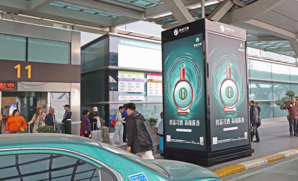 杭州機場包柱燈箱廣告-T1、T2及T3出發大門口右側包柱燈箱廣告
