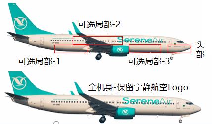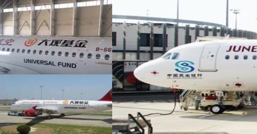 飛機噴涂廣告:把企業的LOGO、形象圖案以及廣告語噴涂在寧靜航空班機的飛機頭部或機身。