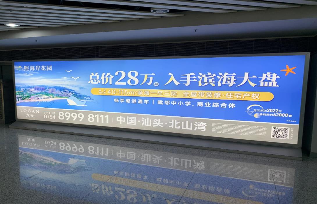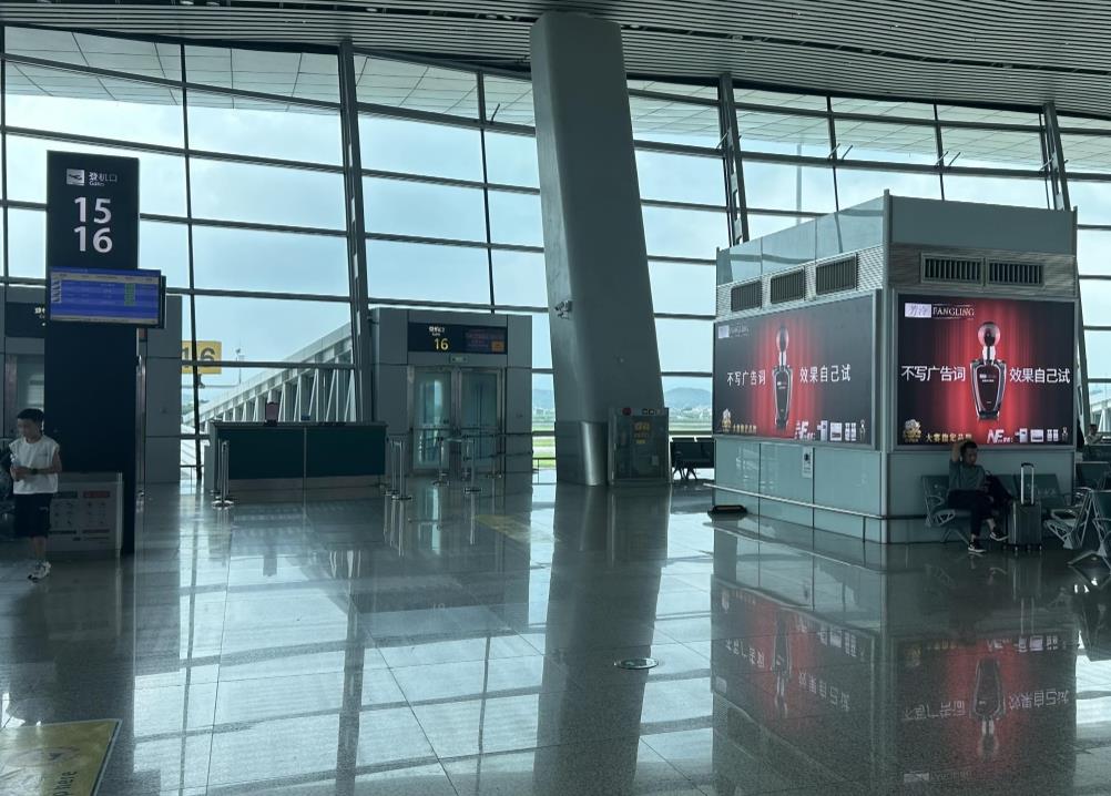揭陽潮汕機場到達侯客大廳包柱燈箱廣告?