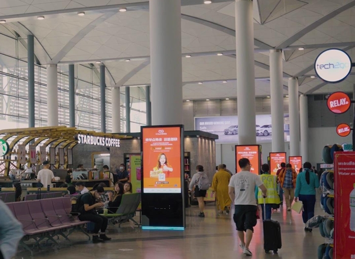 100% 從金邊國際機場出發(fā)的乘客都可以看到的lcd廣告,它可以以多種語言運行訊息傳遞,并有機會全天更改內容以針對不同的受眾。