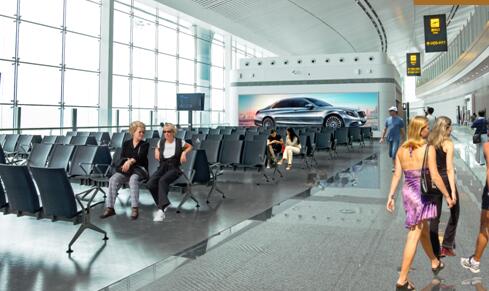 位于離港的必經通道旁,能全面輻射到達人群,同時GTC綜合換乘樞紐、要客區車輛可見,輻射范圍廣。