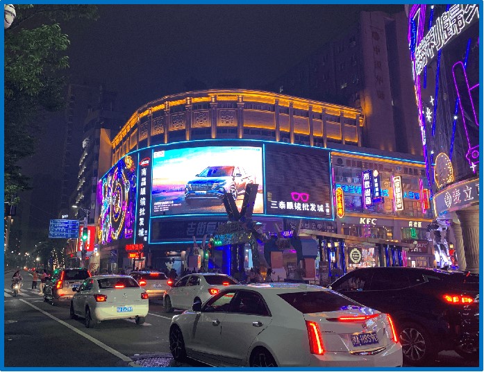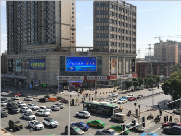 該戶外LED屏幕地處南昌城東商圈最核心十字路口,比鄰青山湖,在南昌主城區重要交通要道——北京路上,同時也是地鐵一號線謝家村站出入口;