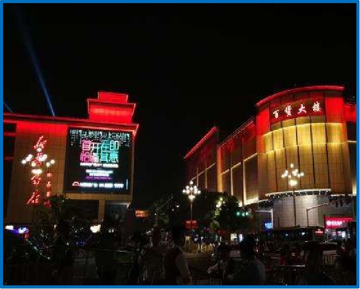 該戶外LED屏幕地處南昌城市腹地,勝利路步行商業街口的三泰黃金大樓外墻上,此地段是南昌市市區內最具有活力的商圈,媒體對面是大型文旅商業——萬壽宮歷史文化街區,也是國家一級博物館,4A旅游景區——南昌八一起義紀念館,媒體成弧形在步行街口,視覺正對單行車道的中山路,高度合適,視覺性高,輻射整條步行街、沿江路、中山路,是南昌市中心區信息傳播的制高點。