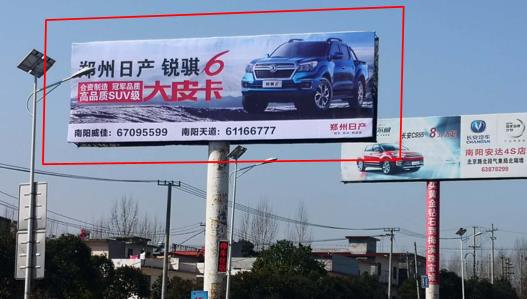 | 媒體形式:省道廣告 媒體規(guī)格:橫6mX18mx2=216㎡ 備 注:無(wú)夜間照明 媒體說(shuō)明:該廣告位位置稀缺,南陽(yáng)至鄧州231省道潦河大橋,八中附近,2塊可上刊,輻射城西,鄧州,該處車流量大、受眾人群眾多。該區(qū)域地理位置開(kāi)闊,大面廣告幅面直接帶來(lái)強(qiáng)烈的視覺(jué)沖擊力,優(yōu)越的地域優(yōu)勢(shì)大大提升廣告發(fā)布的品牌形象。 |