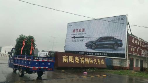 | 媒體形式 : 三面翻廣告牌 媒體規(guī)格 : 16mX8m=128㎡ 媒體說(shuō)明 :該廣告位位于雪楓路迎賓大道北300米路東 泰祥汽車城大門口,三面翻大牌,可視面積大,可視距離遠(yuǎn),車流量:對(duì)面中商農(nóng)批發(fā)市場(chǎng)是南陽(yáng)最大的食品流通批發(fā)市場(chǎng),老國(guó)道,汽車城內(nèi)已入住開(kāi)業(yè)10家4S店,下半年還有4家左右開(kāi)業(yè),35萬(wàn)/天;人流量:30萬(wàn)/天,可視距離遠(yuǎn),視覺(jué)沖擊力強(qiáng),廣告效果絕佳。 |