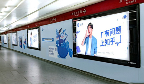 當(dāng)然,知乎不滿足于現(xiàn)有用戶群體,在線上競(jìng)爭(zhēng)日益激烈的今天,它將目光放在了能更快速傳播品牌價(jià)值的戶外廣告,乘坐地鐵通勤的用戶以其高收入、高消費(fèi)的人群特點(diǎn)引起了知乎的注意。由于地鐵廣告形式種類(lèi)繁多,選擇合適的廣告形式尤為重要,作為知名品牌的知乎,選擇了廣告面積巨大、效果更為震撼的地鐵品牌專(zhuān)區(qū)廣告形式,這種地鐵廣告形式能讓大家快速記住知乎這個(gè)品牌。