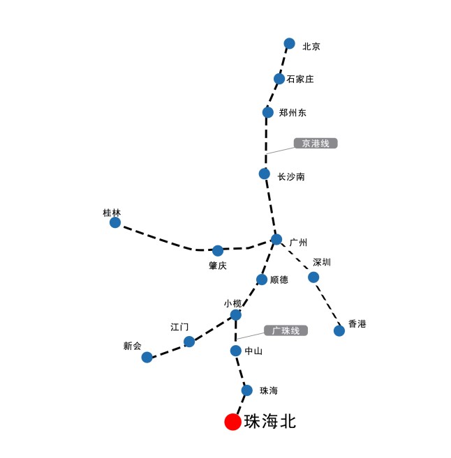 廣珠城軌是廣東省境內一條連接廣州、佛山、中山、珠海和澳門的客運專線鐵路。廣珠城鐵曾隸屬珠江三角洲城際鐵路中的廣州-佛山-中山-珠海-澳門縱向干線,現已被納入中國高速鐵路網,屬于國家八縱八橫高速鐵路主通道中哈京港澳線廣州至澳門區間的部分路段。