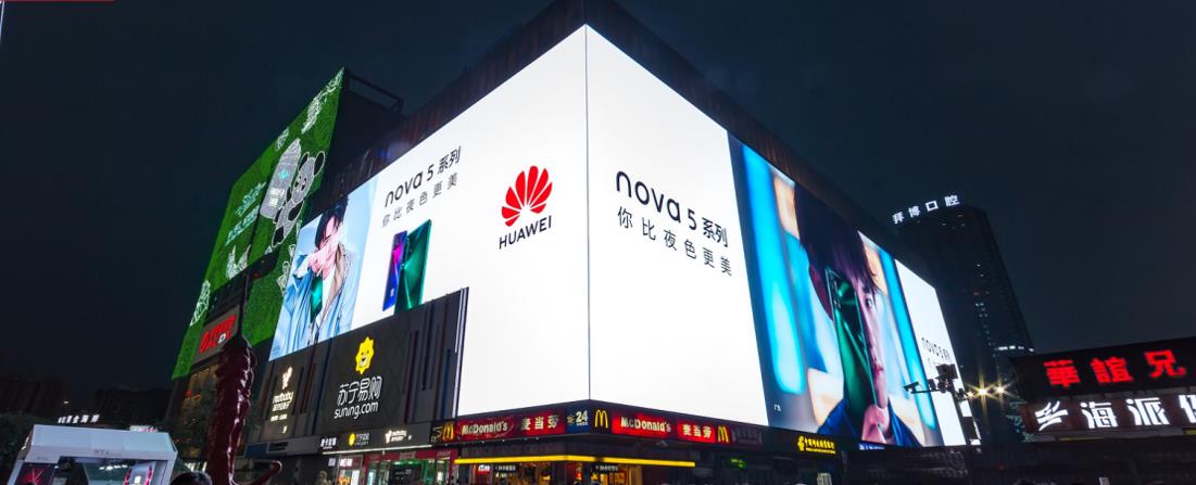 高顏值:融入建筑美學與商圈環境,使用高精度屏體一展都市繁華;區別于其他地標展現形成受限,大屏方正,視野處于行人的觀看最佳區域,帶給目標受眾更具沉浸式的體驗,更能完美呈現品牌客戶的動態視頻和靜態畫面。