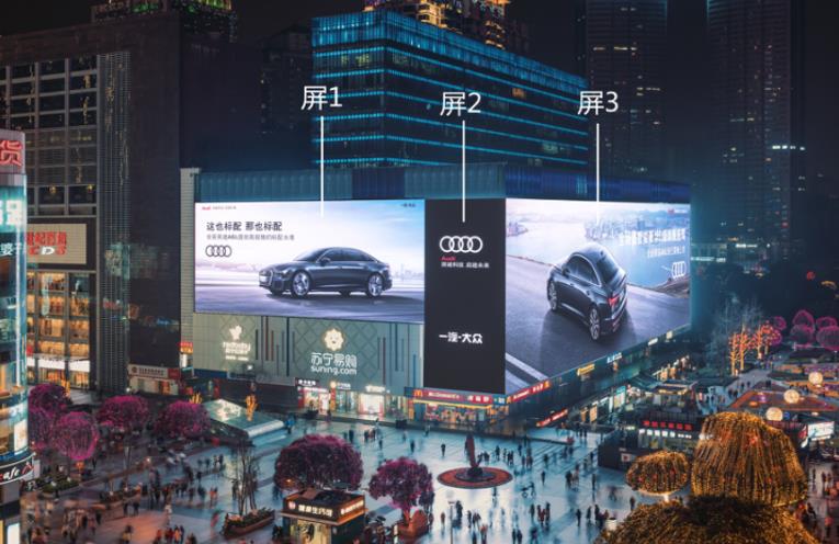 辨識度:觀音橋亞洲之光led大屏,圍繞蘇寧易購大樓兩面搭建而成,全屏3788平方米