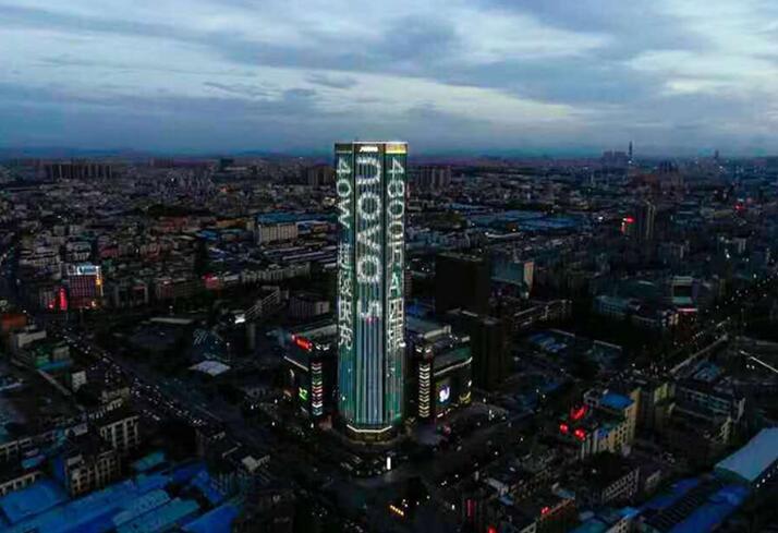 城市地標燈光秀廣告,廣東中山小欖海港城玻璃幕墻燈光秀廣告