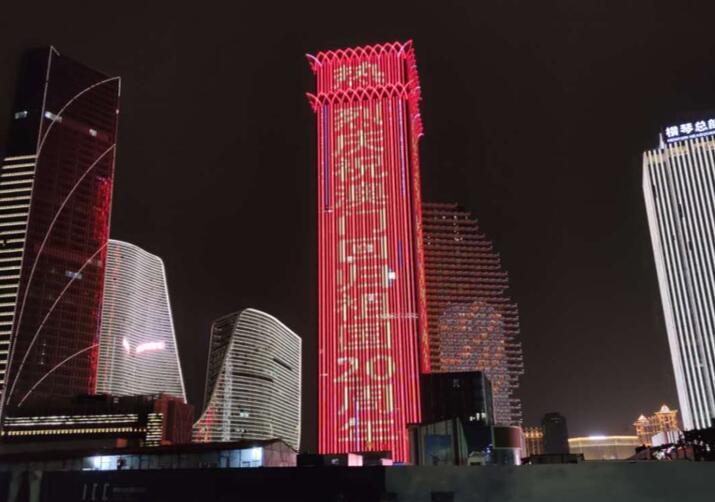 珠海地標(biāo)廣告,珠海橫琴國貿(mào)大廈樓體燈光秀廣告,珠海燈光秀廣告,萬事成傳媒