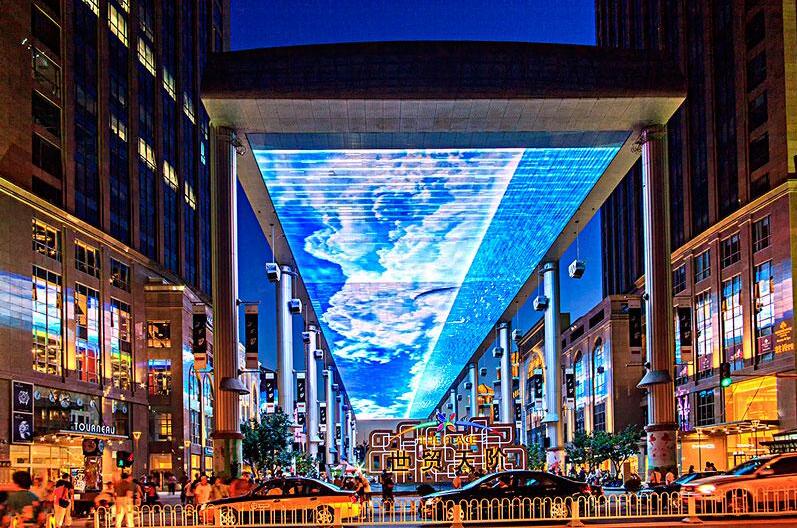 這座天幕將為整條商業(yè)街帶來富于夢幻色彩和時尚品位的聲光組合,成為一座吸引人潮的世界級奇觀。建成之后,人們在這里可以欣賞繽紛悅目的日夜景觀,感受現(xiàn)代科技帶來的富于夢幻色彩和時尚品位的聲光藝術。