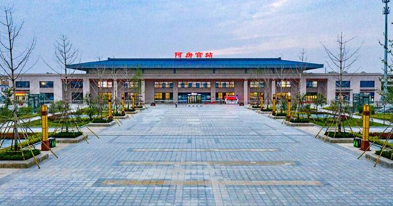 阿房宮站(Epanggong Railway Station),位于中國(guó)陜西省西安市,是中國(guó)鐵路西安局集團(tuán)有限公司西安站管轄的三等站,是西成高速鐵路上的一座車站,西安鐵路樞紐“四主一輔”中的輔站。阿房宮站已經(jīng)于2017年完工并投入使用。遠(yuǎn)期此站還將接入關(guān)中城際鐵路。2017年12月6日,阿房宮站隨西成高鐵一并投入運(yùn)營(yíng)。