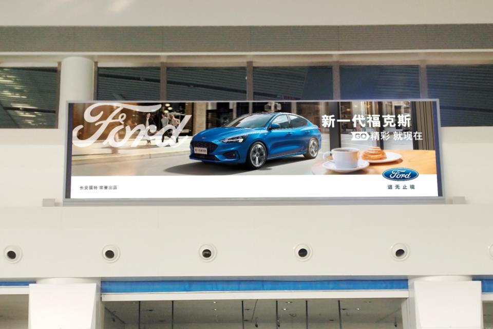 忻州五臺山機場T1航站樓值機柜臺上方led大屏廣告,萬事成傳媒
