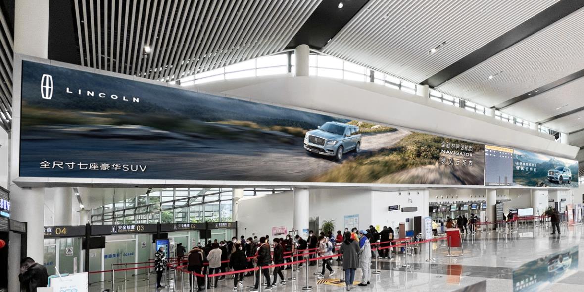 柳州白蓮機場二層國內出發候機大廳登機口上方led廣告