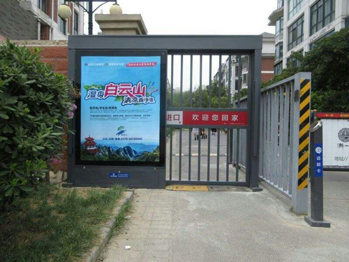 顧名思義,社區(qū)門禁廣告就是安裝在社區(qū)門禁上的廣告,它是由框架和海報組成。