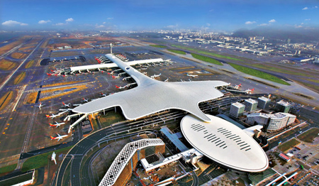 深圳寶安國(guó)際機(jī)場(chǎng)位于珠江口東岸的一片濱海平原上,地理坐標(biāo)為東經(jīng)113。49’,北緯22。36’,距離深圳市區(qū)32公里,場(chǎng)地遼闊,凈空條件優(yōu)良,可供大型客貨機(jī)起降,符合大型國(guó)際機(jī)場(chǎng)運(yùn)行標(biāo)準(zhǔn),深圳寶安國(guó)際機(jī)場(chǎng)實(shí)行24小時(shí)運(yùn)行服務(wù)。