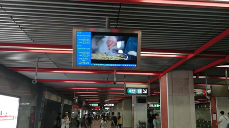 北京地鐵通道LCD電視-進出站及換乘必經之路,唯一動態內容吸引乘客關注。