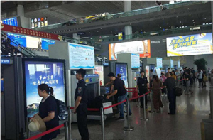 站名:上海虹橋站 媒體類型:安檢口滾動燈箱 現有數量:30 面積(H*W)(㎡/塊):2.2mx1.2m=2.64m²