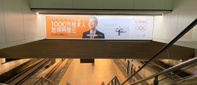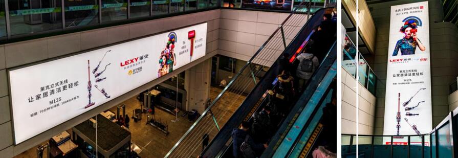 ?媒體位于位于南北進(jìn)站扶梯兩側(cè),條幅般展示,跨度極大;