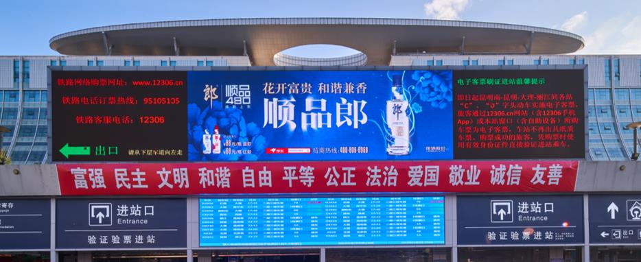 昆明高鐵站廣告,昆明站led屏廣告,高鐵站廣告,萬事成傳媒