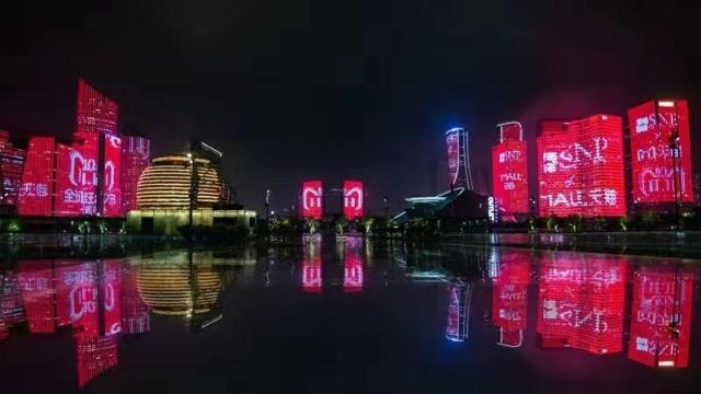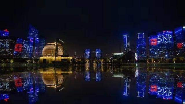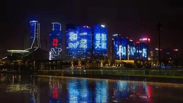 SNP10周年×環球天幕燈光秀,錢江新城,美妝行業的首次天幕秀全球最大戶外屏幕為SNP亮起,伴隨錢塘潮鳴與璀璨光陰,燃起城市之光,SNP已被世界看見!