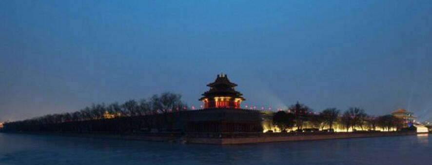 在故宮內(nèi),角樓一共有四座,此次可經(jīng)過東南和東北兩座角樓。角樓造型奇特多姿,十字形屋脊,重檐三層,多角交錯(cuò),覆蓋黃色琉璃瓦頂和鎏金寶頂,熠熠生輝,在黑夜的籠罩下,顯得愈發(fā)莊重了。就算是無法進(jìn)入故宮觀看的游人,也能隔著護(hù)城河拍到角樓精巧的身影。