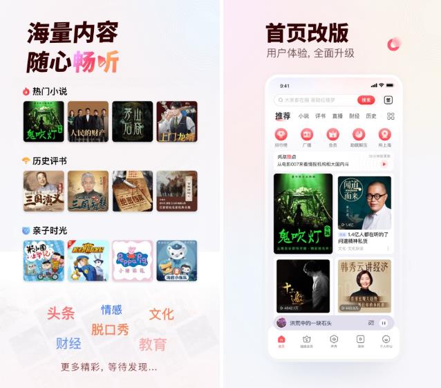 聽書、聽課、聽段子,6億用戶的選擇! 郭德綱、馬東、吳曉波,盡在耳邊! 通勤、堵車、失眠,好無聊?快來聽點(diǎn)有料的!