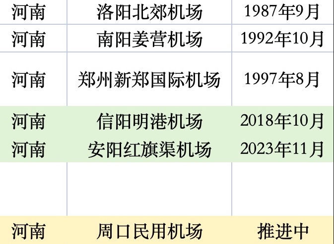 河南已有和在建的民用運輸機場(制表:時代周報記者 王晨婷)